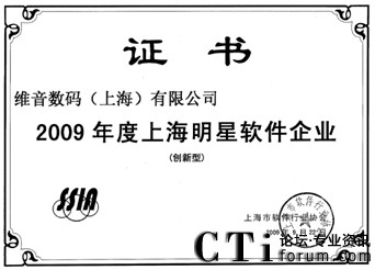 維音數碼榮獲2009年度上海明星軟件企業(yè)