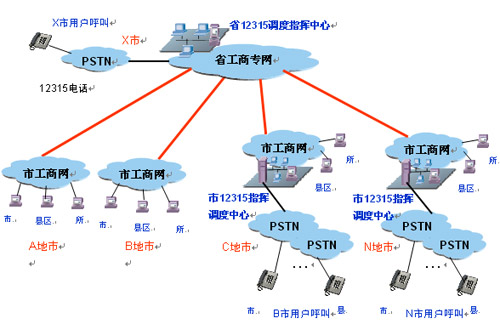 - 利用了國(guó)家公眾電信網(wǎng),實(shí)現(xiàn)全省12315信息網(wǎng)及消費(fèi)者話音網(wǎng)絡(luò)的綜合高速公路。