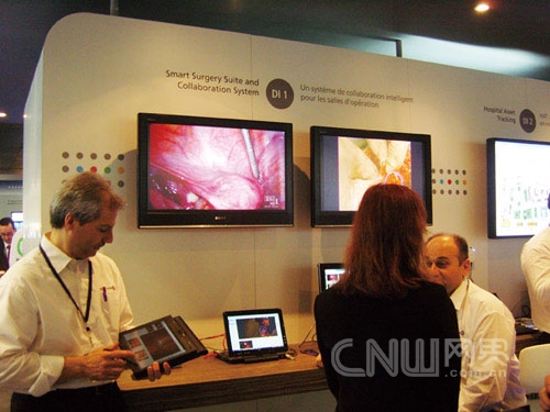 而基于貝爾實(shí)驗(yàn)室創(chuàng)新技術(shù)的Smart Surgery Suite & Collaboration System將音頻、視頻和數(shù)據(jù)會(huì)議與協(xié)作功能帶入手術(shù)室。這套系統(tǒng)可以提供高質(zhì)量的內(nèi)窺鏡視頻信息,這樣外科專家可以遠(yuǎn)程監(jiān)控和指導(dǎo)手術(shù),也可以為其他醫(yī)生提供觀摩學(xué)習(xí)的機(jī)會(huì)。它可以根據(jù)數(shù)據(jù)傳輸率提供高質(zhì)量視頻編碼技術(shù)。這樣可以提供足夠質(zhì)量的視頻分辨率而不會(huì)使網(wǎng)絡(luò)擁塞。另外還提供多方telestration功能,使遠(yuǎn)程的專家可以在直播的內(nèi)窺鏡視頻畫面上畫圖和作注釋。現(xiàn)場(chǎng)演示的是將內(nèi)窺鏡視頻畫面?zhèn)魉偷蕉鄠(gè)客戶端設(shè)備上,本地醫(yī)生在畫面作出標(biāo)記,向遠(yuǎn)程的專家提問,遠(yuǎn)程專家在畫面上標(biāo)出需要切掉的部分。在手術(shù)的同時(shí),來自全球的醫(yī)生都可以通過網(wǎng)絡(luò)實(shí)時(shí)觀看。