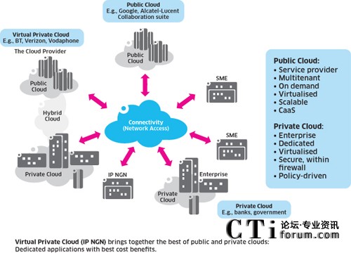 通信服務(wù)提供商非常適合定位于提供云服務(wù),阿爾卡特朗訊企業(yè)部,產(chǎn)品營銷,通信解決方案副總裁(如優(yōu)先級和應(yīng)用程序的緩存)。對于企業(yè)客戶,他們可以建立虛擬私有云,或簡單地成為純粹的云服務(wù)提供商,通過聚合資源,基于基礎(chǔ)設(shè)施為許多組織同時(shí)提供服務(wù)。