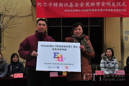 CTI論壇(ctiforum)3月6日消息(記者 浩宇):近日,法國阿爾卡特朗訊基金會(Alcatel-Lucent Foundation)與美國非營利組織世界教育(World Education)在北京市大興區(qū)農(nóng)民工子弟學校——龍海學校聯(lián)合舉辦公益助學活動,來自阿爾卡特朗訊中國旗艦企業(yè)——上海貝爾及世界教育的志愿者為45名貧困生、72名成績優(yōu)秀學生、244名成績進步獎獲得者共計361人發(fā)放獎助學金和獎狀。此次活動是ConnectEd“科技連結(jié)世界”項目協(xié)助流動青少年“透過科技擁抱世界”系列公益活動的重要一站,ConnectEd “科技連結(jié)世界”項目由阿爾卡特朗訊基金會(Alcatel-Lucent Foundation)與世界教育(World Education)共同在全球推動。作為志愿者之一,上海貝爾執(zhí)行副總裁、阿爾卡特朗訊中國區(qū)產(chǎn)品與研發(fā)負責人莊靖博士參與了此次活動,并為阿爾卡特朗訊ConnectEd項目合作校揭牌。雙方還在北京市昌平區(qū)新源學校舉行了公益助學活動,為45名貧困生、39名成績優(yōu)秀學生、52名成績進步獎獲得者共計136人發(fā)放獎助學金。