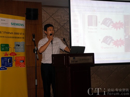 圖:福州華呼北區(qū)銷售總監(jiān)王本海介紹西門子HiPath3000 呼叫中心解決方案