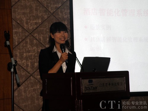 圖:廣州三信事業(yè)部經(jīng)理楊碧清介紹西門子HiPath3000中小型酒店解決方案