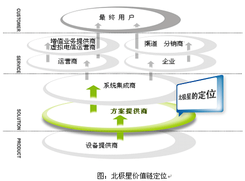 北極星軟件以技術(shù)領(lǐng)先見長。北極星軟件的iAfx ( Intelligent Application Frameworks ) 是一個融合語音、圖像、消息、多媒體數(shù)據(jù)的分布式通信應(yīng)用架構(gòu),為業(yè)務(wù)處理和應(yīng)用開發(fā)提供了全新的概念和良好的環(huán)境。iAfx?體系既充分考慮了對現(xiàn)階段運(yùn)營商網(wǎng)絡(luò)和基礎(chǔ)構(gòu)架的支持,又兼顧了網(wǎng)絡(luò)和通信技術(shù)向下一代發(fā)展的必然趨勢。 基于iAfx?架構(gòu),北極星軟件開發(fā)的系列VoIP增值業(yè)務(wù)解決方案既能適應(yīng)現(xiàn)有網(wǎng)絡(luò)環(huán)境,又能向下一代網(wǎng)絡(luò)(NGN)平滑過渡。