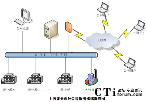 上海證券一直以來都重視IT在企業(yè)發(fā)展中的重要作用,公司成立了信息技術(shù)總部專門負(fù)責(zé)公司信息化平臺的建設(shè)與維護(hù)。2009年4月上海證券視頻會議項(xiàng)目進(jìn)入最終選型階段,經(jīng)過多次測試和評比,最終選用音視頻效果好,運(yùn)行穩(wěn)定,成熟度高的北京威速科技有限公司視頻會議產(chǎn)品V2 Conference視頻會議系統(tǒng)。2009年6月完成了項(xiàng)目實(shí)施部署。