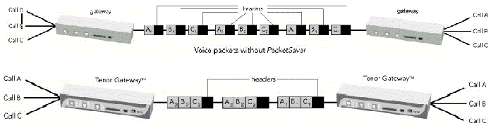 saverTM會將同一時間通話中將同一個目的地的所有語音IP包的包頭部分共享,這樣可以節(jié)省許多頻寬,并加快設備運作的速度。經過實驗證明:只需三方電話就可改善40%的頻寬使用效率。此特色讓Quintum