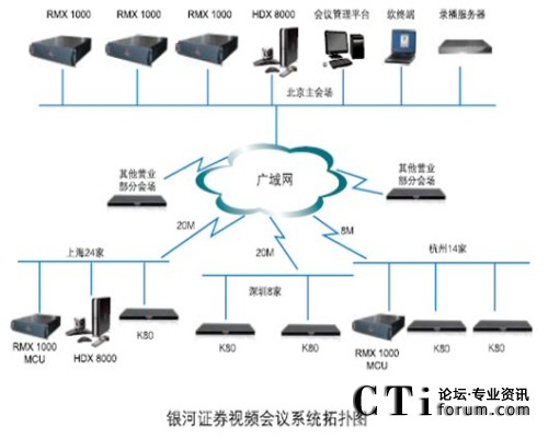 銀河證券視頻會議系統(tǒng)采用寶利通視頻會議產(chǎn)品,在銀河證券北京總部中心機(jī)房配備寶利通新一代實(shí)時媒體會議平臺 RMX 1000 MCU和高清錄播服務(wù)器;在上海和杭州也分別配置了RMX