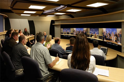而真正的極致遠(yuǎn)真環(huán)境則是由一組而不是一個(gè)攝像頭將遠(yuǎn)端會(huì)場(chǎng)多個(gè)角度同時(shí)拍攝,組合為完整的無(wú)拼接畫(huà)面;會(huì)場(chǎng)顯示系統(tǒng)全景顯示遠(yuǎn)端會(huì)場(chǎng),每個(gè)角度與會(huì)者均清晰可辨;本地和遠(yuǎn)端渾然一體,仿佛身居同一個(gè)會(huì)場(chǎng);這就是寶利通極致遠(yuǎn)真帶給您的當(dāng)今最高效遠(yuǎn)程交流工具,以其獨(dú)特的優(yōu)勢(shì)彌補(bǔ)您93%的信息空白。