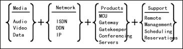 6. 其他專業(yè)行業(yè)。如氣象會(huì)商、水利防汛、司法應(yīng)用、銀行應(yīng)用等。 隨著中國(guó)加入WTO和世界經(jīng)濟(jì)一體化發(fā)展,對(duì)于任何公司,靠技術(shù)壁壘去贏得市場(chǎng)幾乎是不可能的。從圖3也可以看出,視訊應(yīng)用包括視音頻及數(shù)據(jù)源(Media)、傳輸網(wǎng)絡(luò)(Network)、視訊設(shè)備(Products)和專業(yè)的服務(wù)和支持(Support)。
