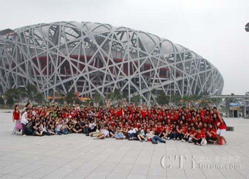 6月25、26 日,在北京奧組委的組織下,觀眾呼叫中心所有志愿者分兩批對(duì)奧林匹克公園進(jìn)行了踏勘。此次踏勘的目的是通過(guò)對(duì)奧運(yùn)主要場(chǎng)館群的參觀,使隊(duì)員們?cè)诖竽X中形成對(duì)“鳥(niǎo)巢”和“水立方”所在的奧林匹克公園場(chǎng)館群中各場(chǎng)館的分布方位的直觀印象。