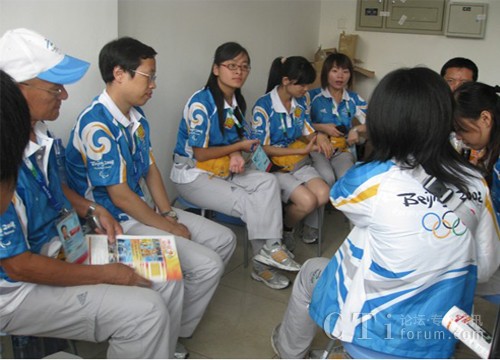 步入休息室,首先映入眼簾的就是語言支持志愿者們的“杰作”——寫滿各國語言的祝福字句的白板,異國文字熱情洋溢地感染著每個人的心。休息室里的崗前討論是呼叫中心的志愿者們工作日的前奏曲,俄、德、法、西班牙、羅馬尼亞志愿者們分享著自己語言支持的經(jīng)驗和感觸。這一刻志愿者休息室頓時成為一個小小“聯(lián)合國”,雖是不同的語言文字卻完全沒有隔閡,因為大家為奧運為殘奧志愿服務的心貼的很親很近……