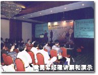 通過兩位演講者深入淺出的講解,看來聆聽者已經(jīng)對文正明的iUnicenter網(wǎng)絡(luò)化客戶服務(wù)中心的構(gòu)成、應(yīng)用有了大致的了解,但與會的證券業(yè)人士關(guān)心的不僅是這套解決方案理論上的優(yōu)越,他們更渴望見到實(shí)際上的表現(xiàn)如何,于是,文正明公司規(guī)劃發(fā)展部付總經(jīng)理黃勇軍就用一氣呵成的模擬演示給了他們完美的答案。