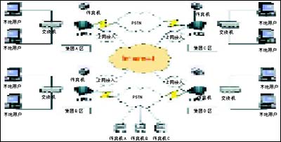 3.系統(tǒng)內用戶發(fā)送傳真說明:集團A區(qū)的用戶如果發(fā)送本地傳真,則在集團A區(qū)的e-FAX網(wǎng)絡傳真機收到任務請求后,通過本地的PSTN網(wǎng)絡發(fā)送傳真,傳真發(fā)送成功后,系統(tǒng)自動給發(fā)送人一份傳真通報,發(fā)送完成;集團A區(qū)的用戶如果發(fā)送外地傳真,例如發(fā)送到集團D區(qū),集團A區(qū)的e-FAX網(wǎng)絡傳真機會自動根據(jù)收到的任務請求信息進行判斷,根據(jù)判斷的信息,將發(fā)送傳真請求和相應的傳真文件通過Internet路由到集團D區(qū)的e-FAX網(wǎng)絡傳真機,集團D區(qū)的網(wǎng)絡傳真機收到訊息后,會自動通過本地的PSTN發(fā)送傳真任務,發(fā)送結果會自動通報到集團A區(qū)的發(fā)送人,發(fā)送完成。同理,在集團的其他區(qū)域內的發(fā)送傳真請求都會自動路由,判斷發(fā)送方式,從而完成發(fā)送任務。