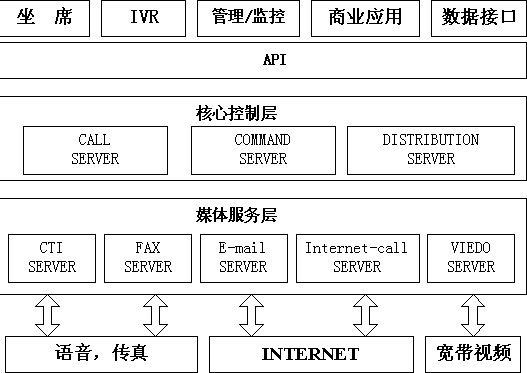 核心控制層用于對(duì)來自不同媒介的客戶進(jìn)行識(shí)別和路由,幫助企業(yè)最大限度地對(duì)每個(gè)連接加以利用,實(shí)現(xiàn)對(duì)所有客戶的全面交互管理,能夠?qū)M(jìn)入呼叫中心的語音呼叫、電子郵件、Web聯(lián)系和傳真通信等所有類型的多媒體交互進(jìn)行路由、通告和告警。可以對(duì)不同的用戶、不同的聯(lián)系方式進(jìn)行統(tǒng)一調(diào)度和個(gè)性化處理,并集中進(jìn)行管理、定制和用戶來訪信息的記錄。