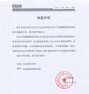 3. 充分利用CTI論壇及合作媒體的優(yōu)勢,廣泛聽取來自業(yè)內人士和廣大用戶的意見和建議。