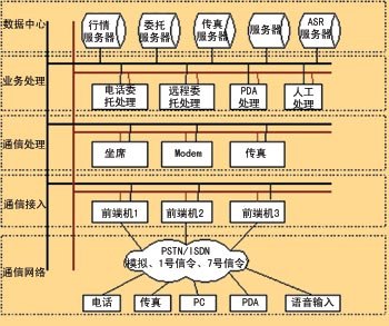 目前,各大證券公司的呼叫中心一般采用多址型,每個(gè)分中心的規(guī)模都不大。各個(gè)營業(yè)部獨(dú)立運(yùn)營,并直接與證交所相連,證券公司內(nèi)部無統(tǒng)一的、大型的數(shù)據(jù)庫。