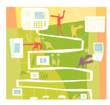 俗話說,多多益善。但是當談到多個網(wǎng)絡的管理或費用承擔等問題時,恐怕大多數(shù)人都會同意一個網(wǎng)絡要比兩個或者三個更為經(jīng)濟有效。這其實是很容易理解的----當數(shù)據(jù),語音和視頻能夠利用同一個網(wǎng)絡進行傳輸?shù)脑,還有什么必要在每個桌子拖上一大堆電線,讓公司維護三五套網(wǎng)絡硬件,還要養(yǎng)活好幾組技術(shù)支持隊伍呢?更何況一個綜合性的網(wǎng)絡還能集中精力為每個用戶提供更好的服務?于是,IP電話應運而生,這種技術(shù)讓很多公司有機會利用現(xiàn)有的網(wǎng)絡框架贏得更大的利益。