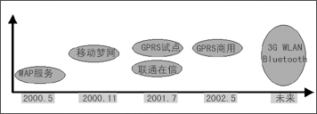 中國移動數(shù)據(jù)業(yè)務是隨著中國移動通信發(fā)展到一定階段而必然出現(xiàn)的。中國的移動通信發(fā)展過程到目前可分為三個階段:第一階段是1987年~1994年,在這段時間內(nèi),中國的移動通信是建立在模擬網(wǎng)絡基礎上的話音業(yè)務;第二階段是1995年~2001年,該階段內(nèi),中國的移動網(wǎng)絡以GSM數(shù)字網(wǎng)為主,經(jīng)營業(yè)務也是話音為主,只是在2000年開始推出一些簡單的數(shù)據(jù)應用;第三階段是2002年及未來十幾年的時段,在該階段,中國的移動網(wǎng)絡將會出現(xiàn)2G、2.5G、3G共存的情況,話音和數(shù)據(jù)業(yè)務將共同發(fā)展。