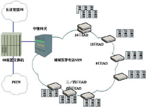 如圖4所示,該公司采用中興ZTE Softswitch系統(tǒng)部署了城域?qū)拵щ娫捪到y(tǒng),在城域網(wǎng)內(nèi)通過(guò)VPN組網(wǎng),各辦公地電話機(jī)通過(guò)多口IAD接入寬帶電話網(wǎng)絡(luò),通過(guò)在ZTE