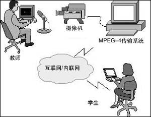 對于需要上課的學(xué)生,可以利用MPEG-4交互教學(xué)系統(tǒng),在自己的家里觀看教師講課,不但能看到教師,還可以同步看到教師計算機(jī)屏幕上的講義。如果在學(xué)生家里的計算機(jī)上安裝了麥克風(fēng)和攝像頭,還可以進(jìn)行視頻交流,“面對面的”溝通。學(xué)生可以“舉手”回答老師的問題,學(xué)生之間可以討論,老師可以進(jìn)行網(wǎng)上測驗。