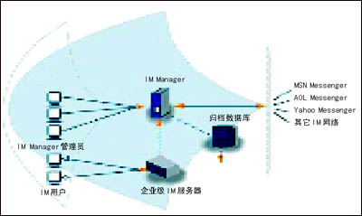 除了這些產業(yè)巨頭以外,巨大的IM管理市場也培育了許多專業(yè)的IM管理廠商。這些廠商的產品可以外掛至大公司的IM服務平臺,從而為企業(yè)用戶提供IM管理解決方案。IMlogic就是這樣一家公司,它的IM Manager產品可以管理來自微軟、雅虎、IBM、AOL以及Jabber等等公司的IM平臺。