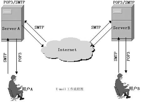 E-mail的工作流程原理如下圖所示。