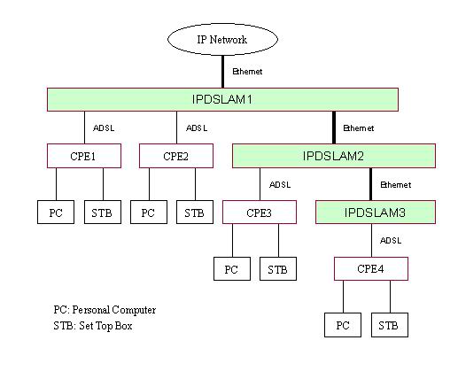 圖1. IPDSLAM設(shè)備所處網(wǎng)絡(luò)結(jié)構(gòu)