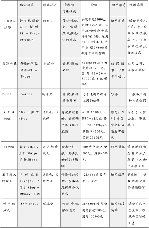 對于通信量較少、通信時間較短的用戶,選用ISDN的費用遠(yuǎn)低于租用DDN專線或幀中繼電路的費用,而且具有速率高、投資少、聯(lián)網(wǎng)方便等特點,能滿足基本會議電視系統(tǒng)的應(yīng)用要求。但全國ISDN網(wǎng)絡(luò)還處在不斷升級階段,可靠性和穩(wěn)定性相對于專線方式還有不足。