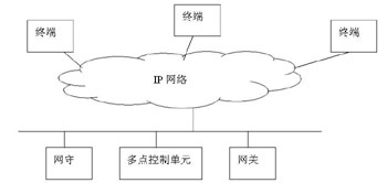 基于H.323的軟件視頻會議系統(tǒng)由相應(yīng)的協(xié)議族提供支持,使得這樣的系統(tǒng)能夠有很強(qiáng)的適應(yīng)性、兼容性。H.323建議的多媒體會議系統(tǒng)不是基于客戶服務(wù)器結(jié)構(gòu),而是基于傳統(tǒng)的電話呼叫網(wǎng)絡(luò)模式。H.323為基于網(wǎng)絡(luò)的通信協(xié)議定義了4個主要的組件:終端(Terminal)、網(wǎng)關(guān)(Gateway)、網(wǎng)守(Gatekeeper)和多點(diǎn)控制單元(MCU)。基本拓?fù)浣Y(jié)構(gòu)結(jié)構(gòu)如圖:
