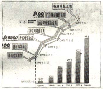 正是憑借著這些優(yōu)勢,即時通信吸引聚集著一些忠誠用戶,并開始搭建網(wǎng)絡(luò)廣告、無線增值等一系列各種潛在的交易平臺。可以想象,一個絕佳的聊天窗口同時也是一個方便的交易窗口和暢通的付費入口,即時通信正在摸索一條前所未有的盈利模式。有專家指出,經(jīng)過近5年的曲折前行,即時通信的盈利模式將在2005年逐步明確。以騰訊QQ為例,我們來剖析一下即時通信的盈利模式是如何由模糊走向清晰的。從1999年2月QQ發(fā)布到2000年5月,QQ迅速聚攏了10萬用戶。2000年8月,騰訊公司同廣東移動合作,僅僅用了一年就扭虧為盈,實現(xiàn)了1000萬人民幣的純利潤。