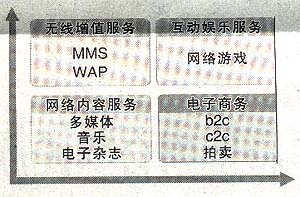 其中,互聯(lián)網(wǎng)及增值業(yè)務(wù)包括兩部分,核心業(yè)務(wù)主要是即時通信服務(wù),包括傳輸文本信息、圖像、視頻、音頻以及會員服務(wù)、號碼服務(wù)、電子郵件等;另外還有娛樂資訊門戶的建設(shè),包括向用戶提供新聞、體育、娛樂等多類資訊,還包括游戲中心、交友中心、校友錄、電子賀卡等多種娛樂服務(wù)。