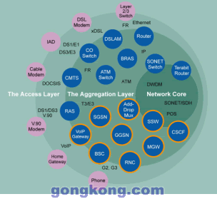 ATCA正在被廣泛應(yīng)用于無線網(wǎng),見圖2中橙色園環(huán)部分,這是由市場(chǎng)對(duì)成本效益,快速部署方案的需求驅(qū)動(dòng)的。服務(wù)提供商和TEM均認(rèn)識(shí)到:用戶愿意為3G網(wǎng)絡(luò)的先進(jìn)功能所付出的只能是少量的附加費(fèi),因此從2G/2.5G向3G轉(zhuǎn)換必須以盡可能低的成本和盡可能靈活的方案來實(shí)施,許多TEM已經(jīng)將ATCA看成滿足快速發(fā)展的無線市場(chǎng)需求的唯一技術(shù)。若基于雙星千兆以太網(wǎng)交換互連,ATCA的性能已經(jīng)很好的滿足無線網(wǎng)要求,因?yàn)檫@些網(wǎng)絡(luò)實(shí)質(zhì)上是低帶寬而高運(yùn)算密度的網(wǎng)絡(luò),對(duì)于實(shí)時(shí)敏感的語(yǔ)音應(yīng)用而言,千兆以太網(wǎng)的高速度已經(jīng)消除了延遲的問題。