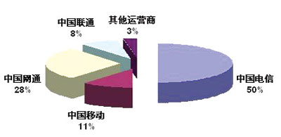 2005年中國NGN收入的主要的市場份額獲得者是在固網(wǎng)資源上有絕對(duì)優(yōu)勢地位的中國電信,其次是網(wǎng)通,2006年以后隨著3G網(wǎng)絡(luò)的部署,廣義的NGN業(yè)務(wù)的收入上,中國移動(dòng)的市場份額會(huì)逐步上升。