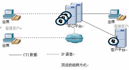 中心系統(tǒng)具備網(wǎng)絡呼叫中心及靈活的設備組網(wǎng)方式,必須使用多種媒體結合技術,平臺能智能處理來自不同媒體的服務請求。多媒體包含了固定電話、移動電話、傳真、尋呼、短消息、Web、Email、視頻、PDA等多媒體。