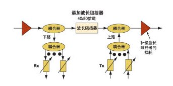 圖2當(dāng)帶寬增加需要波長重用時,可添加波長阻擋器到需要的節(jié)點上。