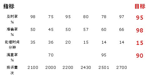 從滿意度的角度來看:5月份的指標(biāo)值已達(dá)到目標(biāo)值95%的要求,但只統(tǒng)計了2月份和5月份兩個月的數(shù)據(jù),數(shù)據(jù)收集不完整,因此,我們對該指標(biāo)無法評價(一般認(rèn)為對三個以下的數(shù)據(jù)無法做出評價)。