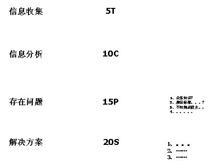 Tables)以及相應(yīng)的收集方法和時(shí)間;第二步是信息分析,明確了如何將已收集的5T(5 Tables)轉(zhuǎn)換成10張圖(10 Charts)以便進(jìn)一步分析;第三步是發(fā)現(xiàn)存在問題,明確了如何從10C(10