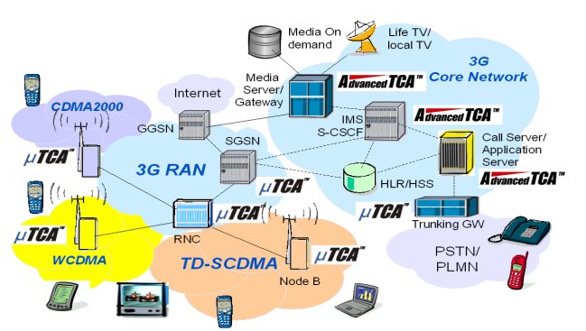 3G網(wǎng)絡(luò)中占主要地位的三個(gè)無(wú)線接入標(biāo)準(zhǔn)是WCDMA、TD-SCDMA與CDMA2000。3GPP與業(yè)界廠商對(duì)網(wǎng)絡(luò)結(jié)構(gòu)的標(biāo)準(zhǔn)化做出的杰出努力,為在世界范圍內(nèi)成功布署3G網(wǎng)絡(luò)業(yè)務(wù)起到了至關(guān)重要的作用。不過(guò),3G網(wǎng)絡(luò)是復(fù)雜的系統(tǒng),包含有多種多樣的網(wǎng)元設(shè)備,AdvancedTCA與MicroTCA技術(shù)的出現(xiàn)把它的實(shí)現(xiàn)方式引向了標(biāo)準(zhǔn)化的道路,即通過(guò)商用組件快速、低成本地布署3G網(wǎng)絡(luò),減少了各種獨(dú)立的實(shí)現(xiàn)方式的復(fù)雜性,提高了互操作性。