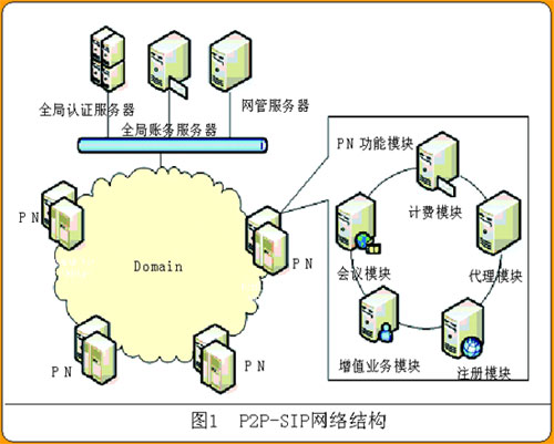 PN在地理上散布各處,邏輯上根據(jù)選用的P2P機制的不同可以是環(huán)形的(Chord協(xié)議)、矩陣的(CAN協(xié)議)、網(wǎng)狀的(Pastry協(xié)議和Tapestry協(xié)議);镜腜N至少包括注冊和代理兩種功能。為進行商業(yè)運營,可以部署全局認證服務(wù)器、全局賬務(wù)服務(wù)器和網(wǎng)管服務(wù)器等等,用于管理全部的用戶和所有的PN。