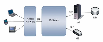 IMS網(wǎng)絡選擇SIP協(xié)議作為呼叫控制協(xié)議,選擇Diameter協(xié)議為運行AAA(認證、授權(quán)、計費)功能的協(xié)議,在網(wǎng)絡安全方面采用IPSec技術(shù)和TLS安全傳送協(xié)議。IMS體系結(jié)構(gòu)包括應用層平面、控制層平面、媒體層平面3個部分。應用層包括了多種類型的應用服務器,這些主持和執(zhí)行服務的SIP實體,可操作在SIP代理模式、SIPUA模式和SIPB2BUA模式下。應用層為用戶提供多媒體業(yè)務,它獨立于網(wǎng)絡的接入層、核心控制層存在,能保證業(yè)務開發(fā)和提供的獨立性?刂茖犹幚頃捫帕,由不同的功能實體來處理信令流,x-CSCF(呼叫會話控制功能)、HSS(歸屬用戶服務器)、MGCF(媒體網(wǎng)關(guān)控制功能)、MRFC(媒體資源功能控制器)等實體協(xié)同操作,提供用戶的統(tǒng)一認證、呼叫控制、策略管理、漫游和計費等功能。媒體層作為一個媒體宣告服務器,直接在用戶之間、用戶和IMS媒體功能(如媒體資源控制處理器MRFP)之間傳輸媒體流。
