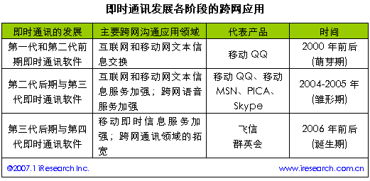 即時通訊發(fā)展各階段的跨網應用