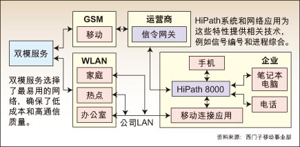 圖:西門子的HiPath MobileConnect系統(tǒng)承諾能夠?qū)崿F(xiàn)真正的FMC。