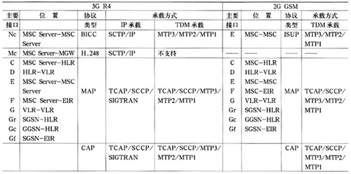 表1 R4核心網(wǎng)與GSM核心網(wǎng)信令接口、協(xié)議及承載方式對比