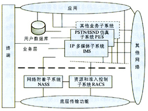 - PSTN/ISDN仿真子系統(tǒng)(PES):為經過網關連接到IP網的傳統(tǒng)電話終端仿真PSTN/ISDN網絡,保證傳統(tǒng)PSTN/ISDN業(yè)務的可用性和一致性,使得終端用戶不會意識到其實并沒有連接到PSTN/ISDN網絡。