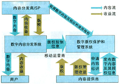 版權技術就是數字內容版權管理(DRM)技術,即給數字內容一定的控制和標識,避免其被非法使用、拷貝和盜版,為基于內容的各種增值業(yè)務發(fā)展提供安全保證。目前,數字版權管理技術正由第一代向第二代發(fā)展。DRM1.0技術主要用于內容的保護,DRM2.0主要加強通信保護和密鑰保護,這正是移動網需要的。