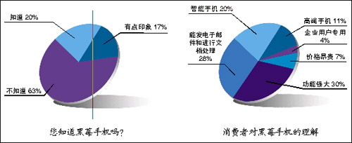 根據(jù)調(diào)查結(jié)果,目前國(guó)內(nèi)知道黑莓手機(jī)的消費(fèi)者僅占20%,有63%的消費(fèi)者從沒(méi)有聽(tīng)說(shuō)過(guò)“黑莓”這個(gè)名字,還有17%的消費(fèi)者只是有點(diǎn)印象。