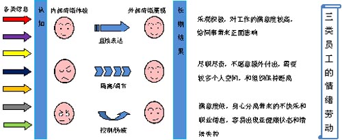情緒勞動(dòng)和智力、體力勞動(dòng)一樣,都是耗費(fèi)心智和體力能量的一種勞動(dòng)形式。而由于這種勞動(dòng)是隨著服務(wù)行業(yè)的興起而發(fā)展的,所以被較少的人意識到,就連心理學(xué)的科學(xué)家們也是1983年才提出了這個(gè)概念,企業(yè)管理者的工作應(yīng)用就更是遲緩。我們從最早接觸呼叫中心的管理,就按照體力勞動(dòng)者的管理方式在進(jìn)行績效和班務(wù)管理,按照智力勞動(dòng)者的方式來進(jìn)行目標(biāo)管理和業(yè)務(wù)培養(yǎng),但是這些所不能識別和涵蓋的情緒勞動(dòng)會(huì)帶來諸多的“Surprise”和難題。盡管有些呼叫中心曾經(jīng)開展過陽光心態(tài)的培訓(xùn)或者心理學(xué)的講座,但是情緒勞動(dòng)的支持和管理不是靠一兩次培訓(xùn)就能解決的。