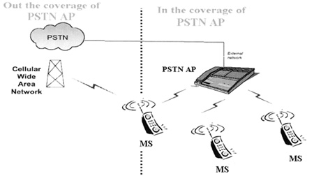 室外環(huán)境下,即脫離藍(lán)牙網(wǎng)絡(luò)覆蓋范圍,CTP MS可以通過(guò)蜂窩網(wǎng)絡(luò)接打電話。當(dāng)CTP MS從室外進(jìn)入到藍(lán)牙網(wǎng)絡(luò)覆蓋區(qū),不需要人工干預(yù),MS可以自動(dòng)通過(guò)AP進(jìn)行注冊(cè),并將蜂窩網(wǎng)絡(luò)的電話轉(zhuǎn)移到藍(lán)牙語(yǔ)音網(wǎng)關(guān)所連接的線路上,撥打PSTN網(wǎng)絡(luò)電話。