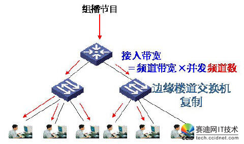 根據(jù)樓道交換機支持的能力,組播復制方式可以采用邊緣復制或集中復制。