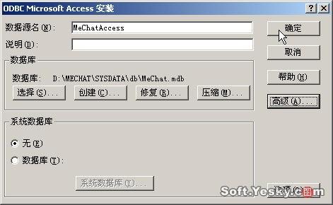 為使Mechat系統(tǒng)具有較高的運行效率,我們將其添加數(shù)據(jù)庫支持,單擊“開始”/“設置”/“控制面板”,選擇“治理工具”/“數(shù)據(jù)源(ODBC)”,切換至“系統(tǒng)DSN”,單擊“添加”按鈕啟動ODBC數(shù)據(jù)源添加向?qū)Вx擇“MicrosoftAccessDriver(*、mdb)”,然后在DSN屬性設置窗口設置數(shù)據(jù)源名稱為“MeChatAccess”,選擇數(shù)據(jù)庫文件為D:\MeChat\SysData\db目錄下的MeChat、mdb(如圖23)。設置完畢,單擊“確定”退出。